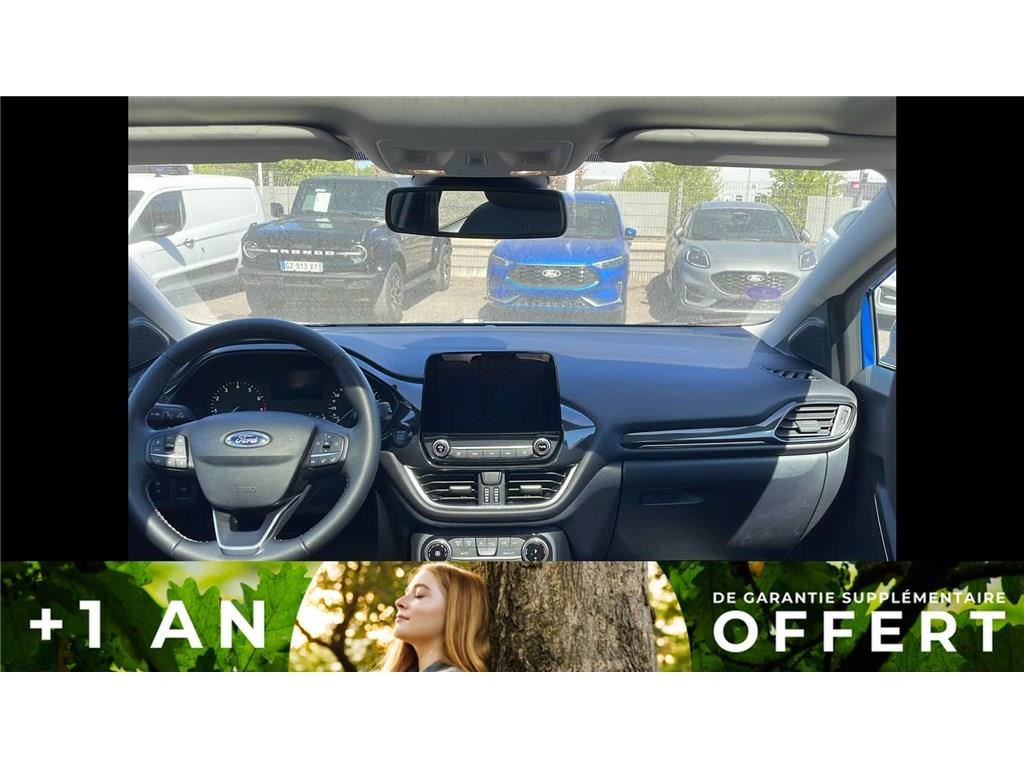 Ecrous anti-vol|Hayon électrique mains libres comprend le KeyFree et bouton Ford Power|Jantes alliage 17" 10 branches finition Absolute Black avec pneus 215/55 R17|Peinture métallisée Fashion Bleu Island|Toit panoramique ouvrant